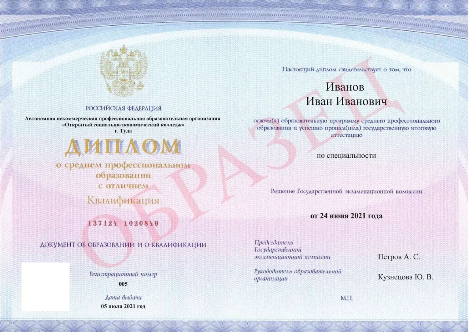 Диплом СПО гособразца